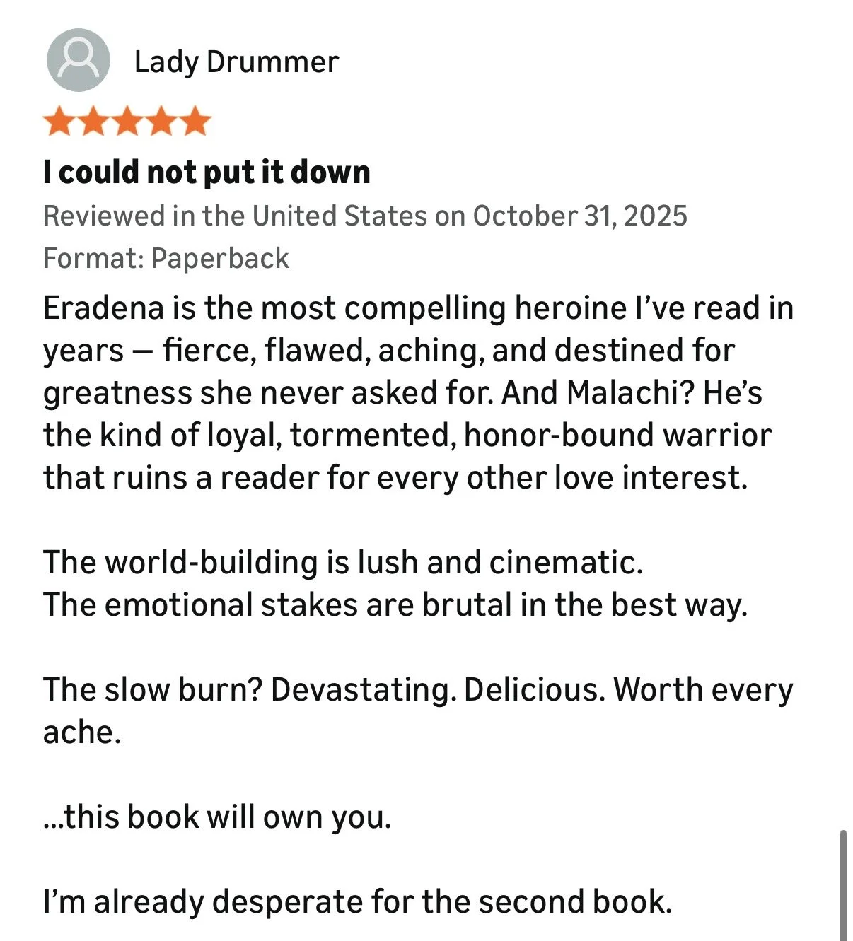 Their chemistry burns hotter than ever, but so do the lies between them. As enemies close in and the line between love and loyalty blurs, Eradena must decide who she can trust—and whether surrendering to Malachi’s touch is worth risking everything, including her soul.
